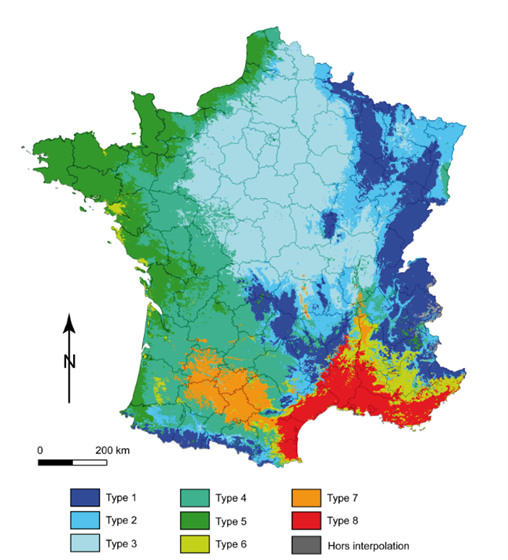 Figure 1 : Typologie climatique du territoire français en 8 classes1 (hors Corse et outre-mer)