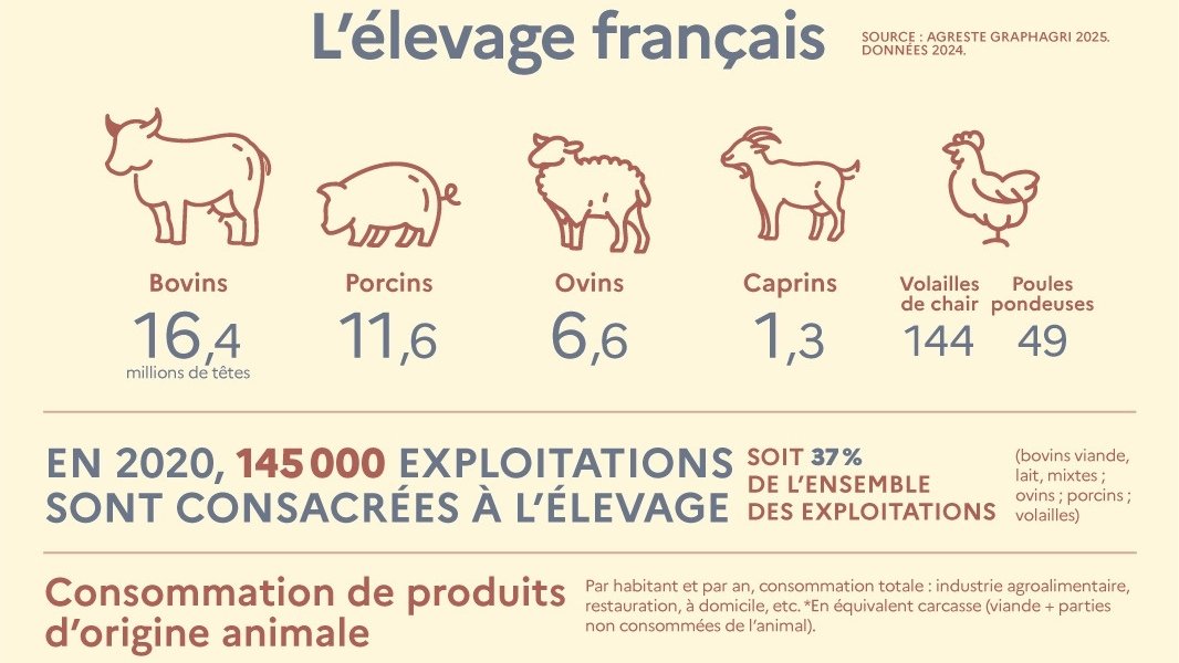 En 2020, 145 000 exploitations sont consacrées à l'élevage, soit 37 % de l'ensemble des exploitations françaises. Découvrez dans cette infographie tous les chiffres de l'élevage français.